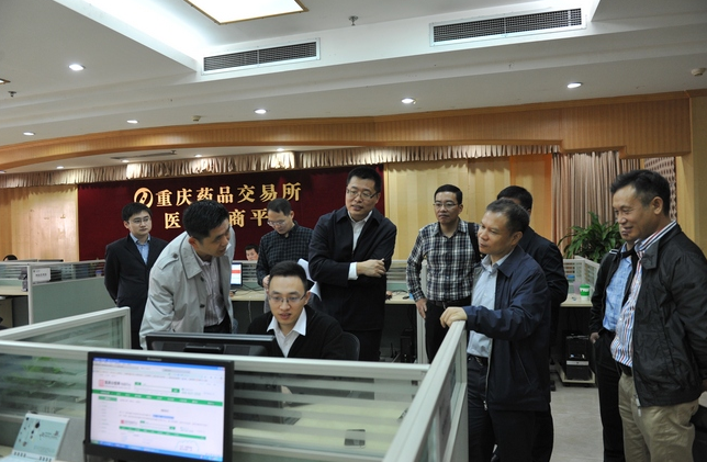 10月25日,工信部软件司司长陈伟到重庆药品交易所考察医药电商平台,并对平台建设及发展方向进行现场指导。