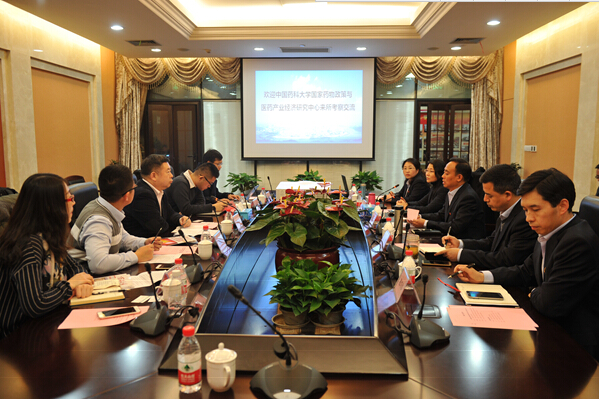3月9日下午,中国药科大学副校长姚文兵带队课题组到重庆药交所调研。与会双方围绕“医药卫生体制改革背景下药品流通体系的合理化研究”进行了充分交流,就重庆医药流通改革、药品交易所运行模式及药品采购工作等方面进行了深入探讨,并在政策研究、课题项目