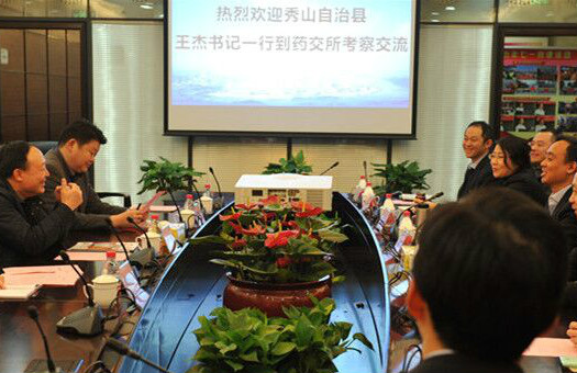 2016年1月29日,重庆市秀山县委书记王杰、县长向业顺一行到重庆药交所考察。
