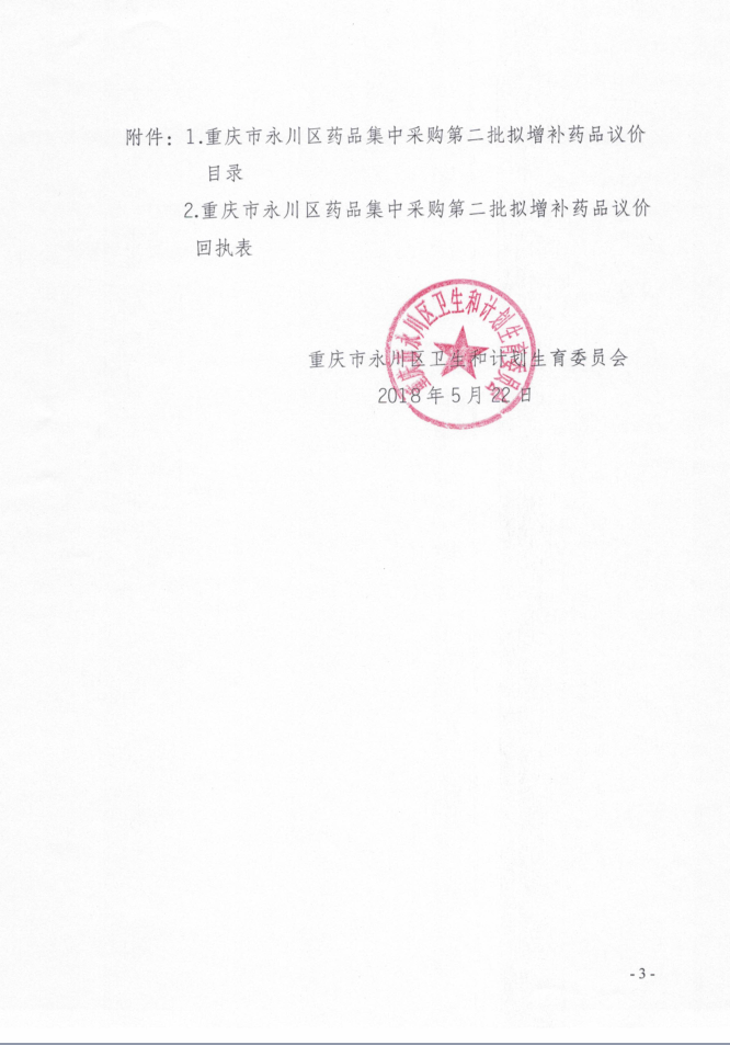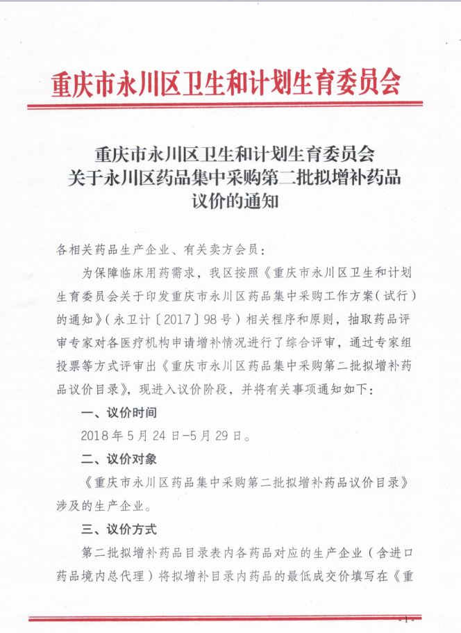 附件1:重庆市永川区药品集中采购第二批拟增补药品议价目录
